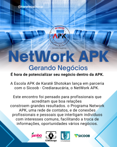 A Escola APK de Karatê Shotokan promove o lançamento do Network APK, um evento especial criado para fortalecer conexões, gerar oportunidades e impulsionar novos negócios entre pais, alunos, parceiros e empresários da entidade.